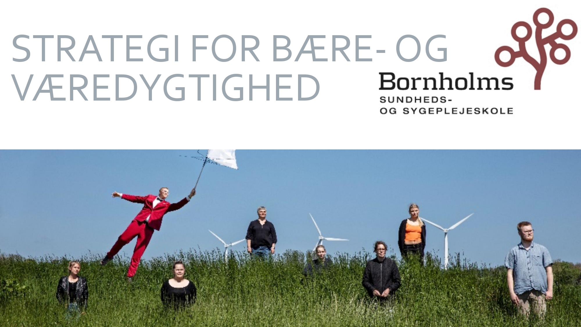På Bornholms Sundheds- og Sygeplejeskole inkorporerer vi en bæredygtig tankegang og tilgang i vores handlinger og udviklingsprocesser. Vi ønsker med vores bæredygtige arbejde at tage ansvar for den verden vi lever i samtidig med, at vi er med til at sikre de bedst mulige betingelser for de næste generationer.